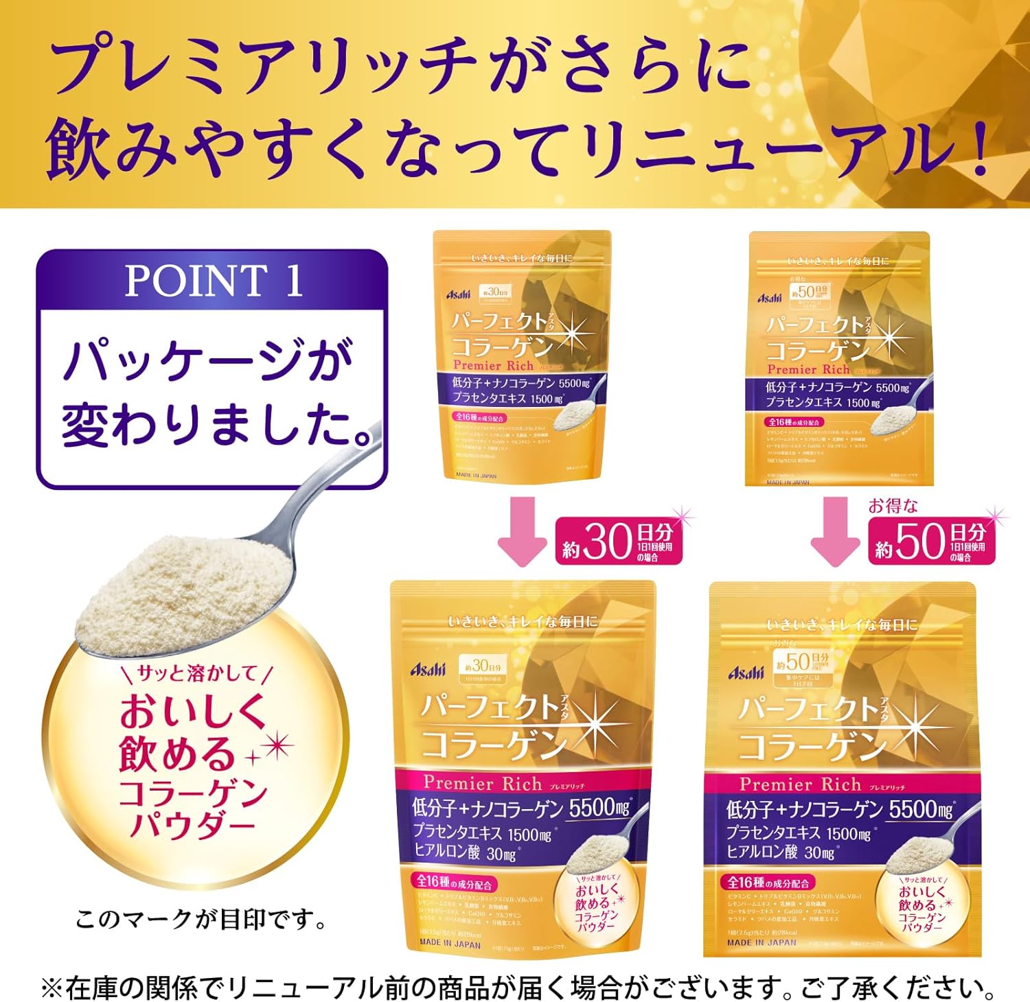 Asahi Gold Collagen Powder Gold Enhanced Edition 30 Days / 50 Days Collagen Gold Premium Edition Gold Upgraded Edition Sakura Edition Sakura Luxury