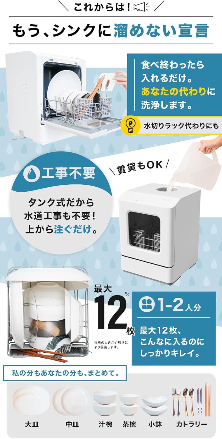 [標準存儲容量] 11-12 件(大盤...2 件中盤或杯子...2 件小盤...2-3 件小碗...3 件碗...2 件小件(筷子、勺子、叉子、湯匙等)專用洗滌劑標準使用量】約3~5g