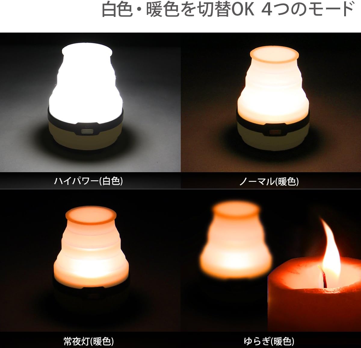 亮度:高功率模式/200lm(白色 LED)、正常模式/100lm(暖色 LED)、夜燈/20lm(暖色 LED)、波動模式/可變(暖色 LED)
